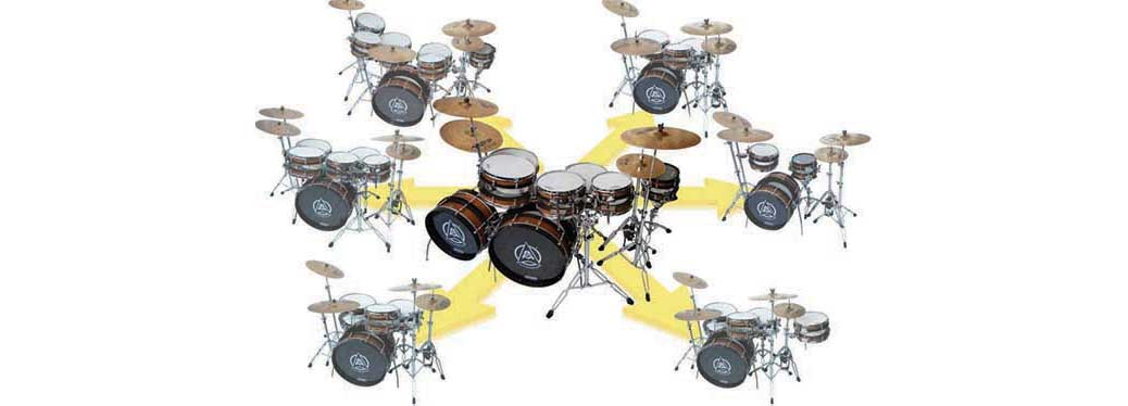 RotodruM brand, firstly launched at 2008 Frankfurt Musikmesse, present AVANT TIME which features a new concept of drum starting from an idea began back in 1979 with the first patent of Riccardo Martinazzi, at that time nineteen. AVANT TIME drums consist of two semi-shells mounted on a calibrated arm, so that you can change the distance between the heads with a simple move. This innovation gives you the possibility to work not only on the tuning of the heads but to vary the depth of the drum as you prefer. AVANT TIME is the most versatile drum kit ever produced. Varying depth and tuning you can play every musical style in every situation.
